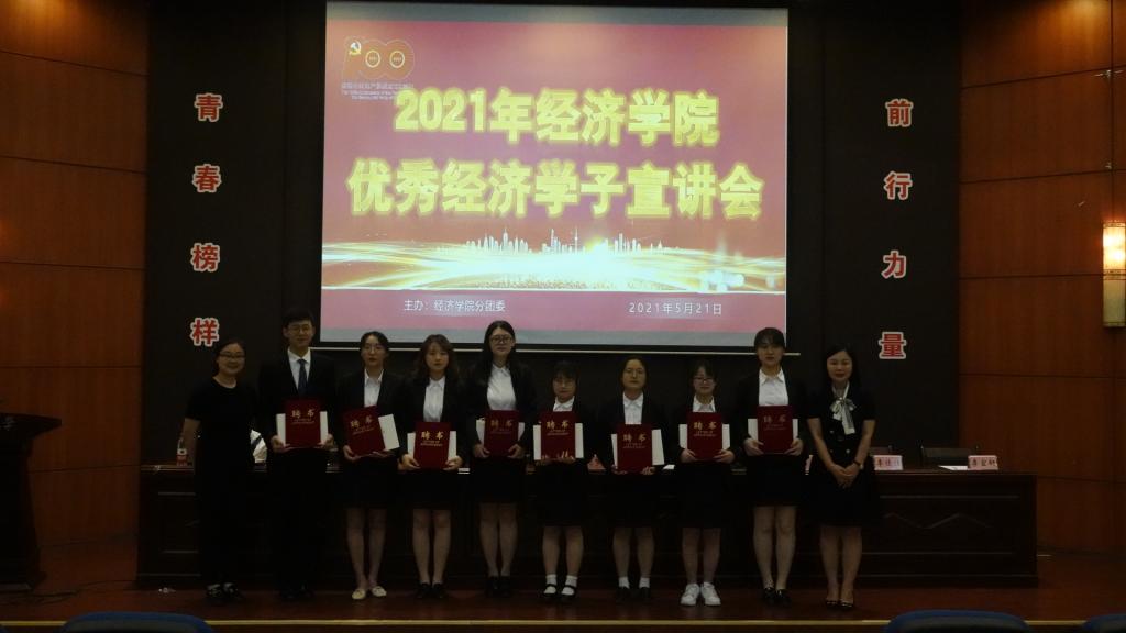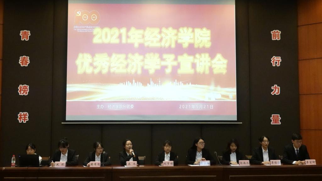 5月21日晚,“青春榜样 前行力量”优秀经济学子宣讲会于江北校区B509报告厅成功召开。我院分党委副书记、副院长王燕教授,副院长朱沙教授,学工办主任、分团委书记林新竹老师及我院、通识学院辅导员代表出席了本次宣讲会。本届“优秀经济学子”宣讲团由戚颖、蹇情情、秦鸿、刘梦婷、薛宇桐、郭南冰、李佳佳、李宜轩八位成员组成。