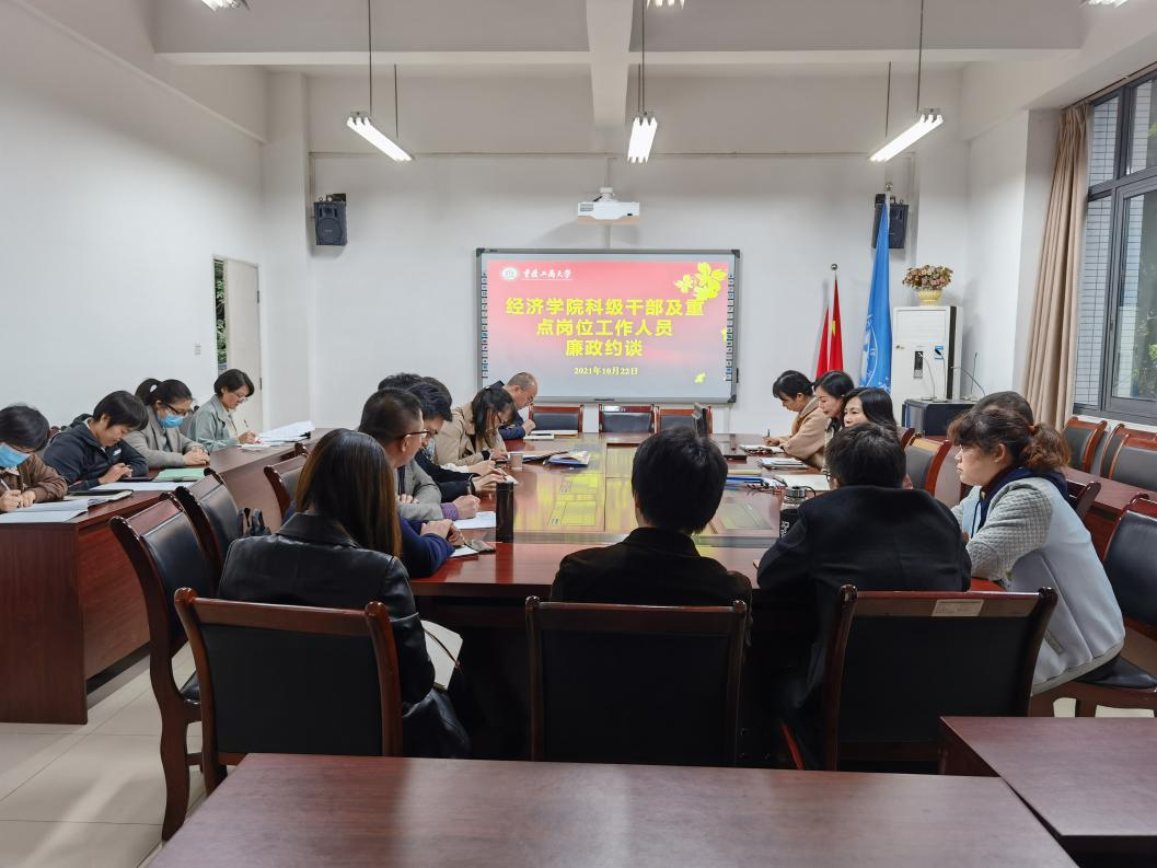 10月22日下午,我院科级干部及重点岗位工作人员廉政约谈会在田家炳书院404会议室召开,我院书记李自维、学生工作副书记王燕、我院及长江上游中心全体副科级及以上干部出席此会,会议由王燕副书记主持召开。