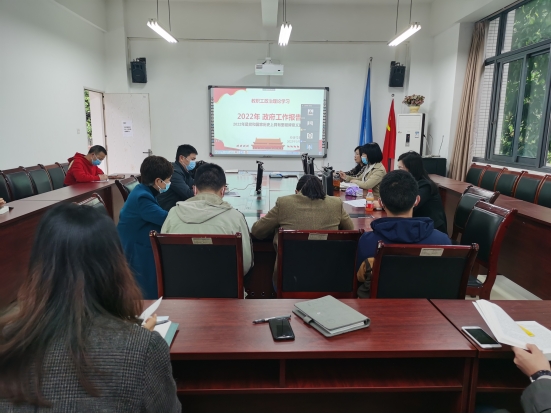 学院党委书记李自维传达学习了2022年政府工作报告和全国教育工作会议精神。政府工作报告全面客观地总结了2021年政府工作,提出了2022年国家经济社会发展总体要求和政策取向;全国教育工作会议强调在“两个大局”背景下,要跳出教育看教育、立足全局看教育、放眼长远看教育,准确识变、主动求变、积极应变。随后,李自维对做好学校疫情防控工作提出要求,指出要充分认识当前校园疫情防控的严峻形势,将疫情防控作为头等大事,严格按要求抓好落实,党员干部师生要主动担当,弘扬正气,充分发挥先锋模范作用,以实际行动合力维护疫情防控稳定大局。最后,李自维就巡视整改成效满意度测评工作提出要求,强调教职工务必高度重视,本着对学校发展负责的态度,认真完成巡视整改成效满意度测评。