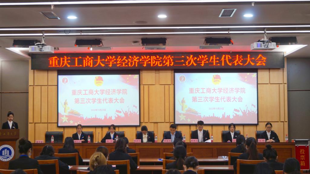 我院党委白海龙副书记为大会致辞。他代表我院党委对大会的召开表示热烈祝贺,肯定了过去一年学生会在自我教育、自我管理、自我服务方面取得的优异成绩和长足进步。他表示,我院分团委学生会始终坚持为同学服务的思想方针,以院训“敬道养正,励学修远”为指导,在思想引领、服务大局、服务青年、自身建设等多个方面做出重要贡献。白书记重点介绍了我院打造的“3大平台”——三经(经济论坛、经济论丛、经济学子杂志期刊)、三赛(国家、专业、学科标志性赛事)和三讲(优秀毕业生宣讲会、优秀经济学子宣讲会、优秀校友宣讲会),列举了多年来学院在学风建设上获得的光辉荣誉,鼓励经济学子继续拼搏奋斗,共同开创我院分团委学生工作更加美好的未来!