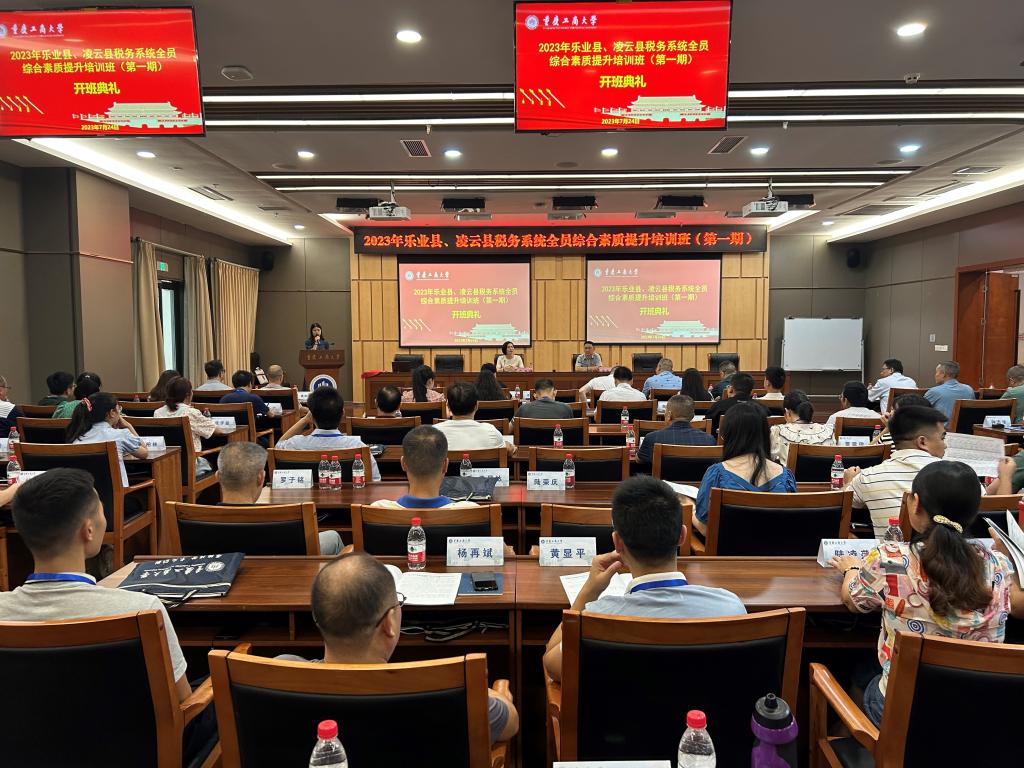 2023年7月24日上午,2023年乐业县、凌云县税务系统全员综合素质提升培训班(第一期)开班典礼在我校图书馆会议中心一会议室举行。乐业县、凌云县税务系统共计80名业务骨干参加此次培训,365英国上市公司综合办公室主任严艳,乐业县税务局党委书记、局长廖宾出席开班仪式。
