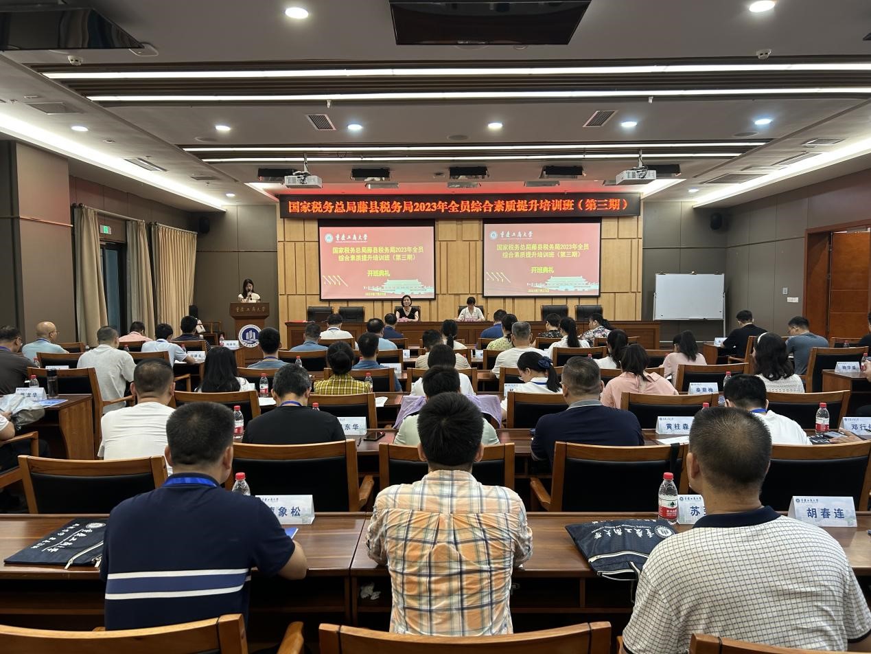 为全面贯彻党的二十大精神,推进2023年藤县税务局重点工作,2023年7月25日上午,由国家税务总局藤县税务局主办的“国家税务总局藤县税务局2023年全员综合素质提升培训班(第三期)”开班仪式在我校图书馆会议中心一会议室举行。藤县税务局及各分局税务系统共计54名业务骨干参加此次培训,365英国上市公司综合办公室主任严艳,国家税务总局藤县税务局党委书记、局长欧阳霞出席开班仪式。