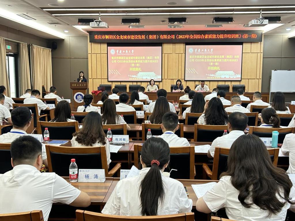 国有企业的发展离不开人才,人才也需要不断提高自身综合能力。为切实全面提高国有企业职工综合素质和业务能力,促进综合能力提升,2023年9月9日,重庆市铜梁区金龙城市建设发展(集团)有限公司2023年全员综合素质能力提升培训班(第一期)在我校正式开班。金龙城建集团及各子公司共55名职工参加此次培训,我院院长宋瑛、综合办公室主任严艳,金龙城建集团董事长朱建东出席开班仪式。