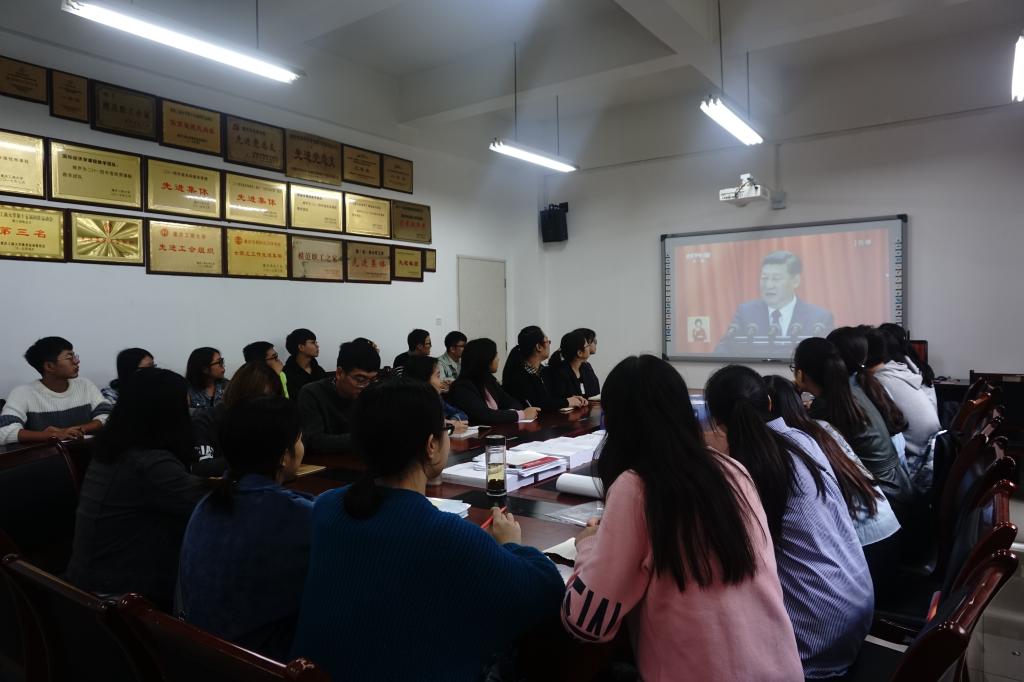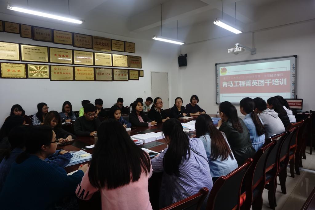 培训期间恰逢十九大召开,为提高共青团员的政治性及先进性,首先,于频副书记带领参与培训的全体成员一起观看了十九大视频,学习了十九大报告内容。随后,于书记对学生干部作了培训,提出了几点要求:第一,要讲团结,讲大局,讲集体主义。学生干部之间要加强沟通和联系,切忌搞形式主义,要构建你中有我我中有你的形态,共同进步和发展。第二,要讲奉献,讲投入,讲兢兢业业。压力对于学生干部而言同样也是一种锻炼,干部本身要稳得住,沉得下,有耐心,摆正心态做好定位,做好自己的本职工作,高标准高要求自己。第三,要讲创新,讲开拓,讲精品工程。学生干部要多思考,多钻研,拓宽自己的视野和思路。举办活动的时候注重质量,向学风建设、专业提升、同学需求等方面下功夫,多总结多反思。