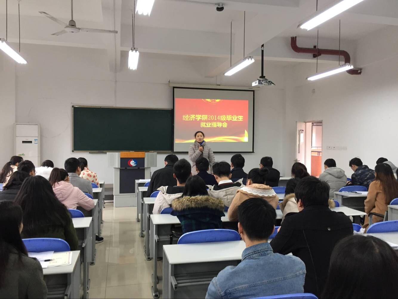 为进一步了解2014级考研大学生的实习就业需求,引导帮助毕业生尽快从紧张的备考状态投入到实习就业进程中。2017年12月26日上午10:30,我院在田家炳书院406教室成功召开了2014级毕业生就业指导会。学院分党委王小玲书记,2014级辅导员郝颖老师、喻智成老师,学院就业联络员邓雪霜老师以及2014级百余考研学子参加了此次会议。
