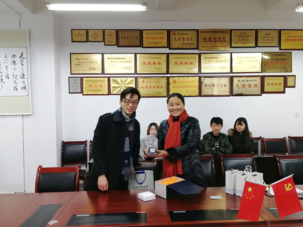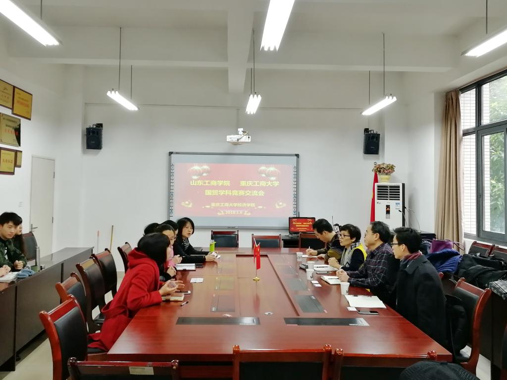 2018年1月7日上午,山东工商学院一行4位教师到访我院,就全国商业精英挑战赛展开经验交流。学院分党委王小玲书记、宋瑛副院长、国贸系蒋兴红主任、冉梨老师以2017年全国商业精英挑战赛国际贸易竞赛全国一等奖的两支队成员参与了此次座谈。