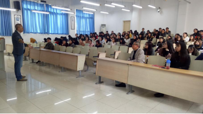 邹学长首先以非常幽默的方式回忆起了他的大学生活,大学生活是丰富多彩的,是无憾的。当谈到他的事业时,同学们更是惊叹不已。在宗申进出口公司做了8年的摩托车出口,负责全面开拓美国市场;在浙江台州王野动力有限公司做了3年营销总监,全面负责电动踏板车出口业务;现在自主创业成立一家进出口公司,自己当老板。从他身上,同学们看到了外贸背后的艰辛,艰辛背后的心酸,心酸背后的努力,努力背后的厚积,厚积而薄发才有了如今的他。带着对学长的崇敬,进入到了第二环节,学长谈到了国际贸易的核心问题:正如理论中所讲的那样,影响国际贸易的核心因素是发生在国际贸易任意环节的风险:包括政治的、文化的、运输途中的、收款过程中、汇率风险等等。学长以他个人的外贸经验为切入点,用自己真实的案例去阐释。实践出真知,经过了学长的讲解,同学们对外贸有了更深层次的了解。经过一番知识的再学习,学长引领大家对未来展开更深入的思考。正如习近平总书记说的那样:“我们要拥抱新时代”。新的时代国际贸易每天都在变化。所谓“渠道为王”,如何快速占领这一渠道?如何面对未来激烈的竞争?需要我们每个人培养自己的核心竞争力。