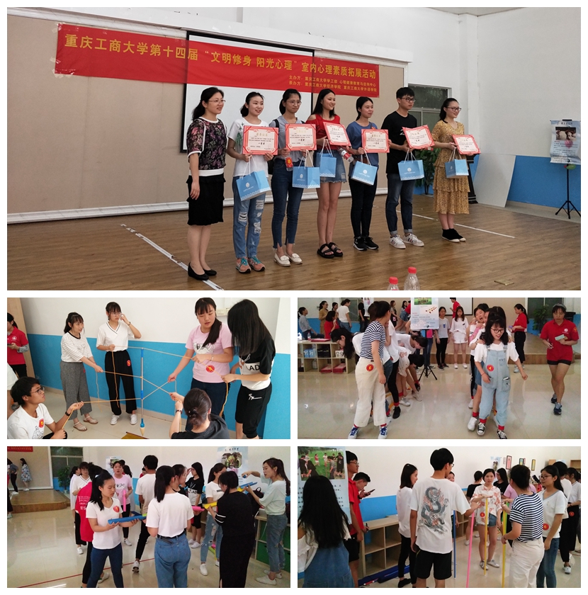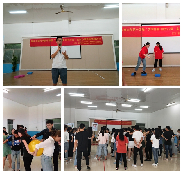 为了提高大学生的心理健康素质,帮助同学们提高团队协作精神和人际交往能力。由我院党员服务站和外语学院党员服务站联合承办的365英国上市公司第十四届“文明修身 阳光心理”系列活动之室内心理素质拓展活动于2018年5月18日下午两点半在南岸校区外语活动中心顺利开展。365英国上市公司心理教育与咨询中心的周明老师、我院的于频副书记、郝颖老师和外语学院的吴欢欢老师都来到活动现场与近百名报名参赛的同学们互动。在工作人员的耐心指导和同学们的积极配合下,活动得以圆满成功,参与同学们都表示受益匪浅。