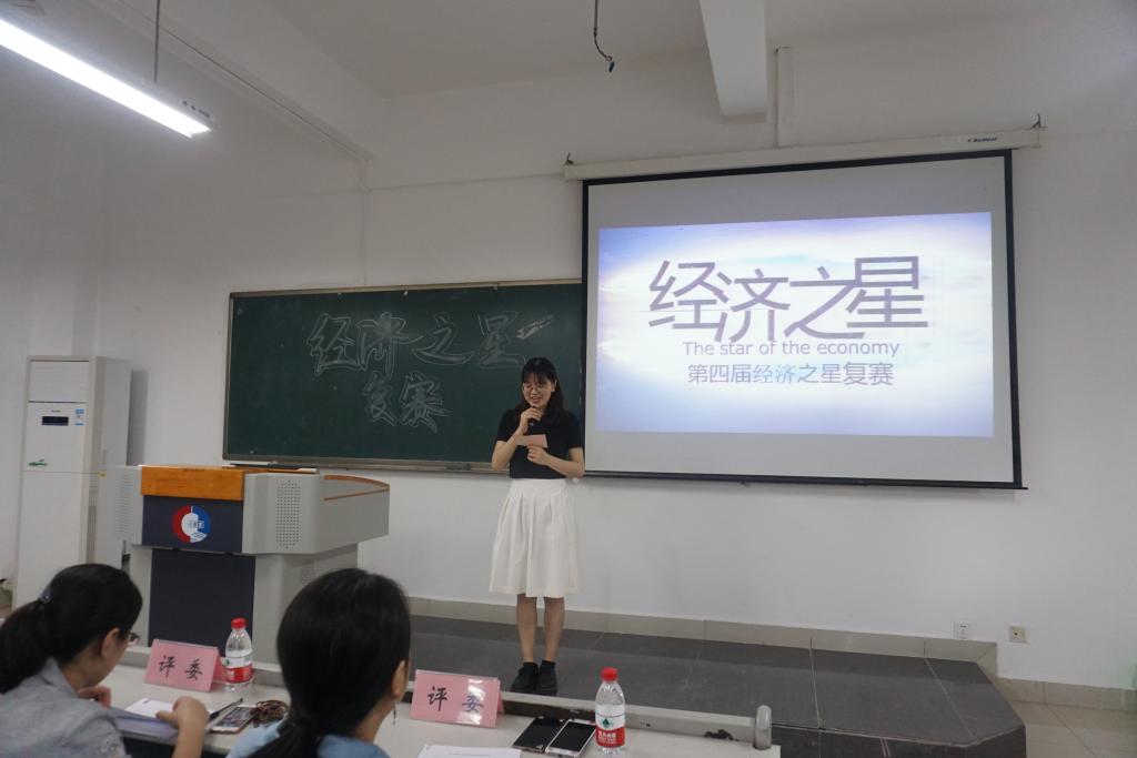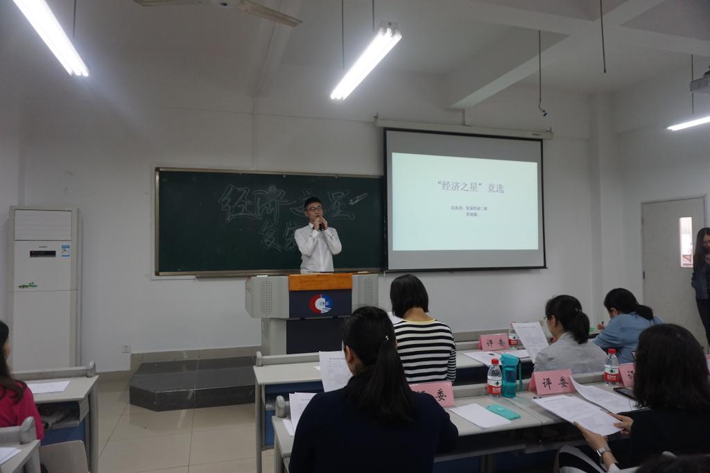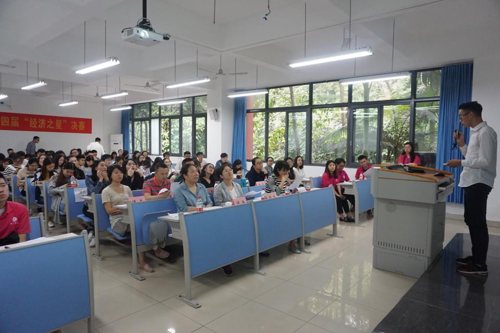 5月初,通过同学自荐、老师同学推荐等方式,确定候选名单,学院邀请教师代表对候选同学材料进行评选,最终确定12名同学进入决赛答辩。5月25日,第四届“经济之星”复赛在田家炳408举办,我院分党委于频副书记,贸经系主任杨海丽老师,国贸系王美英老师,经济系何泱泱老师,学团办主任杨华俊老师,分团委书记蒋敏老师及学团办辅导员老师们担任此次活动的专业评审,同时来自我院14、15级各班的大众评审共同参与了此次评选。决赛分为两个环节:PPT展示和现场答辩。PPT展示阶段,参加复赛的选手们对自己的实践经历、获奖情况等进行了展示。“学习之星”优异的成绩单、“实践之星”丰富的实践经验、“科技之星”充满创新意识的成果、“文艺之星”精彩的文艺展示、“公益之星”感人的志愿服务经历、“体育之星”曾获的众多比赛名次,都让在座的同学们深受鼓舞。现场答辩阶段,由评委老师们随机向选手进行提问,选手们的回答让现场响起阵阵掌声。