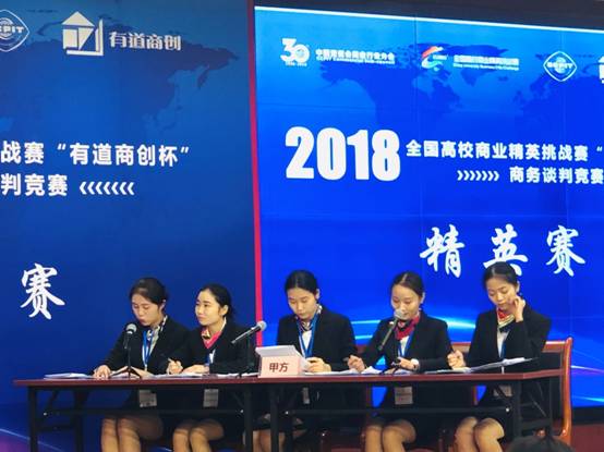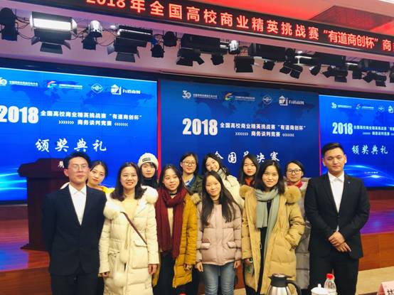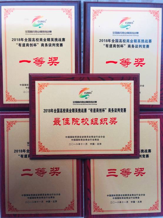 2018年11月25日,由教育部经济与贸易类专业教学指导委员会、中国国际贸易促进委员会商业行业分会、中国国际商会商业行业分会等单位主办的全国高校商业精英挑战赛“有道商创杯”商务谈判竞赛总决赛在北京落下帷幕。由我校我院蒋兴红、戴林、冉梨、张涛等老师指导,来自我院、商务策划学院、会计学院、管理学院的24名队员组成的4支队伍参加了此赛事。由邢宇等六名同学组成的六小龄童代表队经过激烈的小组赛,以小组前三名的成绩晋级前八强精英赛!最终,本校获得一等奖2项,二等奖1项,三等奖1项!