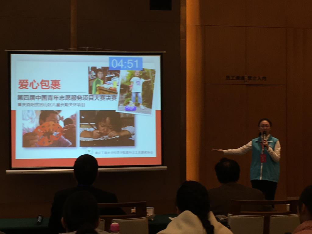 第四届中国青年志愿服务项目大赛于2018年11月30日—12月1日在四川德阳成功举办。我校我院义工志愿者协会携“爱心包裹——重庆酉阳贫困山区儿童长期关怀项目”参赛,荣获共青团中央、中央文明办等部委联合颁发的银奖。