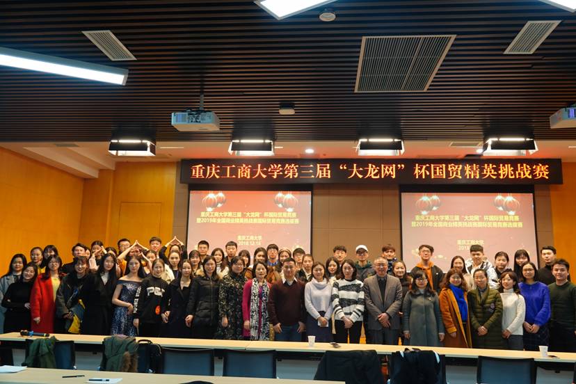 2018年12月16日,由365英国上市公司和大龙网中国有限公司联合主办,我院和国际商学院联合承办的第三届“大龙网”杯国贸精英挑战赛暨2019年全国商业精英挑战赛国际贸易竞赛选拔赛在我校新图书馆举行。来自我校国际经济与贸易、经济学、会展经济与管理、工商管理、金融学、电子商务、物流管理、营销策划等专业的27支队伍、200名同学分成3个分会场,参加了此次竞赛。我院分党委王小玲书记、大龙网平台运营副总裁仇小丽女士、中国贸促会商业行会行业部副部长李璟女士、我院分党委于频副书记、国际商学院李大鹏副院长、我院国贸系主任蒋兴红副教授、图书馆戴林副馆长、国际贸易竞赛指导教师团队出席了本赛事,吸引了西南政法大学、重庆交通大学、四川外国语大学、重庆科技学院、长江师范学院等高校国贸专业的师生前来观摩。
