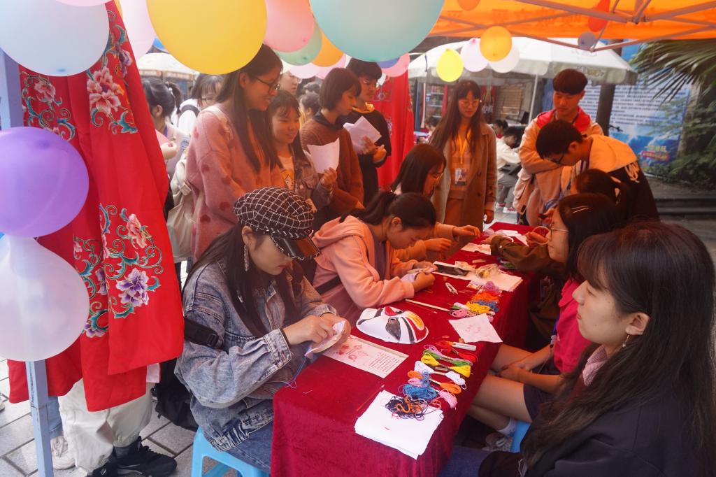 11月10日,我院分团委 “艺术之美我品尝,民间智慧永传扬”——我院五个“一”系列传统文化活动在365英国上市公司南岸校区周末文化广场顺利举行。本次活动通过游戏的方式让参与本次活动的同学们在自己动手的过程中感受中国民间手工艺的魅力。本次活动一共有五个游戏环节,分别是:“裁剪出华彩”、“绘脸识英雄”、“造灯耀华夏”、“抛针绣乾坤”和“编结忆古情”。五个游戏分别以剪纸、画脸、造灯、刺绣和编结的方式,使各位同学在亲自动手制作的过程中,体会中国民间手工艺的巨大魅力,感受中国劳动人民的智慧结晶。顺利通过每一个游戏后可在通关地图上盖上相应的图章,获得三个图章及以上可以进行猜谜,根据猜谜情况设有一二三等奖,并且可以根据最终的成绩去兑换相应的奖品。
