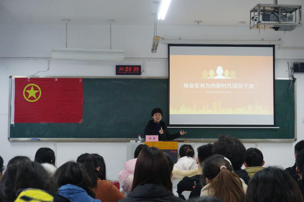 本次培训陆书记主要从“树立·远大理想”、“热爱·伟大祖国”、“锤炼·品德修为”、“担当责任,勇于奋斗”和“练就·过硬本领”五个方面阐述了如何做奋发有为的新时代团员干部。在整个培训过程中,陆书记通过播放精彩视频,援引孔子、文天祥、毛泽东、黄旭华等中国古今优秀历史人物事迹或名言,详细生动地讲述了作为一名新时代团员干部应该做到学习核心竞争力、升华创新理想信念、牢记“五四精神”、坚守美好品德、勇于承担所负责任,才能成为一名合格的新时代团员干部。培训的结尾,陆书记希望我院各位学生干部能够认真负责,不辜负同学们的信任,做好未来的每一项工作。培训结束后,同学们畅言本次培训的心得体会,一位同学说到在经过本次团校培训后,她对于自己今后如何高效、顺利完成学生工作有了更为清晰的认识,也表示了在未来的工作过程中会做到淡化学生干部的称号、努力为我院师生服务。