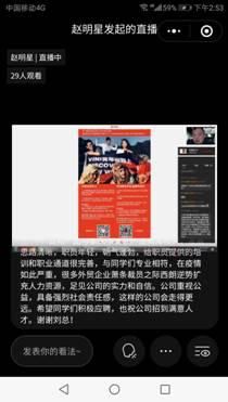 4月18日下午2点,由国际经济与贸易系系主任蒋兴红老师联系,与学院长期保持合作关系的重庆西朗进出口公司为我院国贸专业毕业生举办了线上专场招聘会,学院王小玲书记、蒋兴红老师及毕业班辅导员郭春花老师及29名国贸专业毕业生参与了招聘会。西朗进出口公司刘丹董事长亲自进行了公司情况介绍,对公司文化、职员职业晋升通道以及公司国际化发展目标进行了详细介绍,激发参与同学们的强烈兴趣,学院领导、老师对公司发展前景非常看好,鼓励同学们积极投递简历,同学们反响热烈。