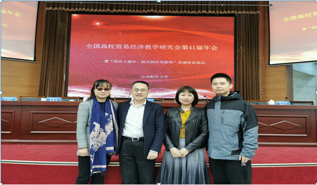 10月23日,由全国高校贸易经济教学研究会主办、山西财经大学承办的“全国高校贸易经济研究会第41届年会暨‘国内大循环、国内国际国际’双循环贸易前沿论坛”在山财经大学国际交流中心学术报告厅召开。共计80多位从事贸易经济教学与科研的专家学者参加了本次会议。我校长江上游经济研究中心曾庆均教授,教务处副处长宋瑛,我院贸易经济系主任杨海丽、教师张驰博士参加了本次会议。
