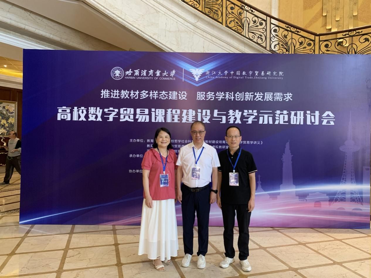 2025年7月18-20日,由教育部新时代高校哲学社会科学原创性教材建设培育项目《数字贸易学讲义》、教育部国际经济与贸易虚拟教研室数字贸易虚拟教研室、浙江大学中国数字贸易研究院主办,哈尔滨商业大学我院、小马过河创新团队、中国人民大学出版社承办的“高校数字贸易课程建设与教学示范研讨会”在黑龙江哈尔滨召开,我校《数字贸易》交叉融合课程组蒋兴红、王春豪两位老师参会,与来自浙江大学、湖南大学、中南财经政法大学等全国158所高校300多位教师共商数字贸易课程建设与学科发展。