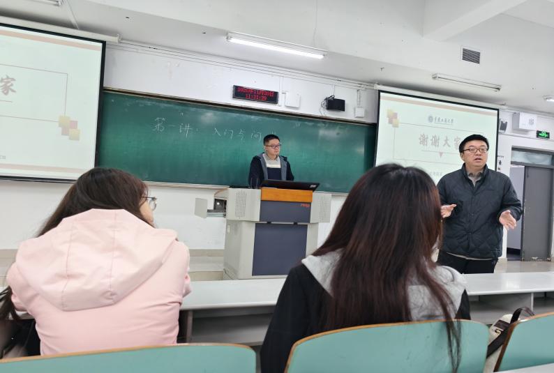 随后,任羽卓博士结合自身学习与研究经验,从五个方面为同学们提出建议:一是树立多元发展目标,加强时间管理;二是拓展课外阅读与独立思考,推荐《牛奶可乐经济学》等读物,提倡提前复习、主动学习;三是积极参与科研竞赛,注重团队协作与选题创新;四是平衡学业与实践,在过程中锻炼综合能力;五是善用AI工具,须以自主思考为基础,并推荐了AreGIS、Python、R等数据分析工具。