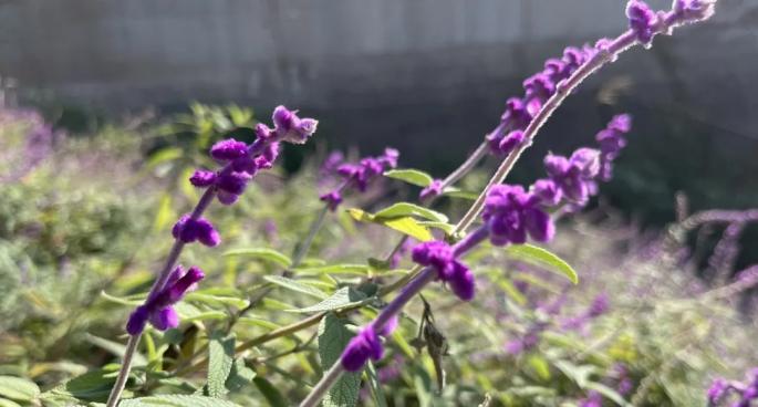 墨西哥鼠尾草,又名紫绒鼠尾草,为鼠尾草属植物。其原产于中美洲墨西哥中部及东部,生性喜温暖、光照充足的环境,具备一定耐寒性,唯独不耐湿,花期集中在8-10月。鼠尾草家族品类繁多,花朵还有红色、蓝色等多种色彩,墨西哥鼠尾草以独特的紫色花穗成为其中极具辨识度的一员。