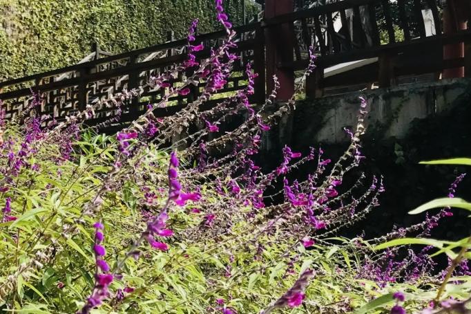 墨西哥鼠尾草主要分布在翠湖中上游区域,其中翠湖长廊下面的水边坡地是植株生长最为茂盛的地方。因重庆的气候特点,这里的墨西哥鼠尾草夏秋季会绽放成毛绒绒的紫色花海,靓丽夺目;即便到了冬季,也能在枯草或绿叶间见到零星的紫色花影,阳光下尽显可爱。