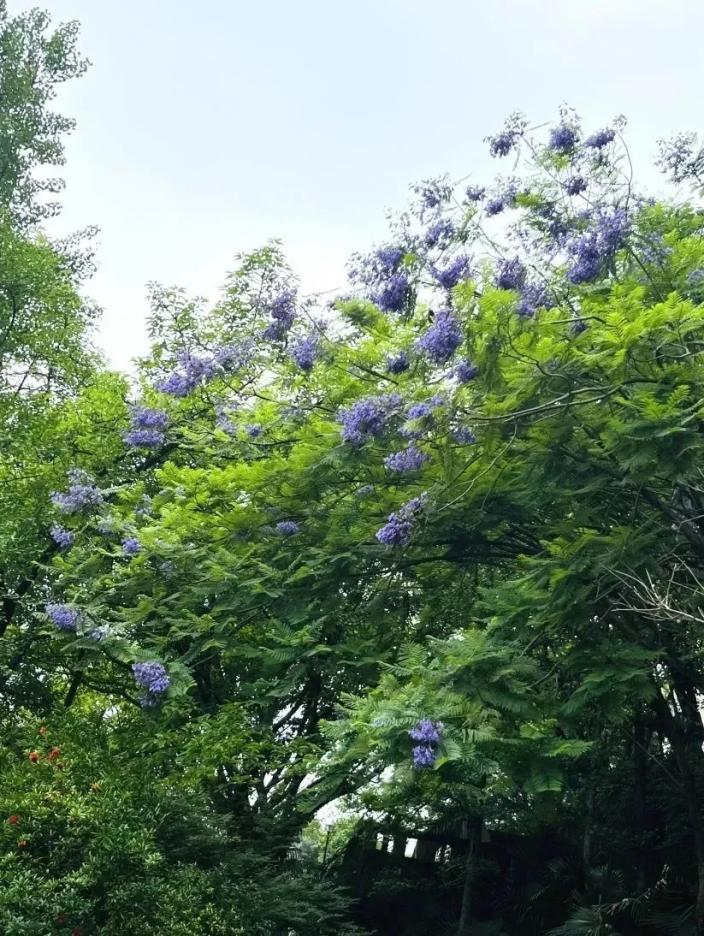 蓝花楹的花语自带浪漫忧愁的独特气质,既代表着宁静、深远与忧郁,也象征着在绝望中等待爱情,让这株乔木不仅有视觉上的美感,更被赋予了细腻的情感内涵,成为兼具颜值与诗意的文化符号。