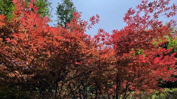 红枫有着独特的精神寓意,其树龄愈长,叶色愈红,老而尤红的生长特质,象征着不畏艰难困苦的坚韧品格,在岁月磨砺中始终保持本色,这份坚韧也成为校园里一抹别样的精神底色,默默感染着往来的师生。