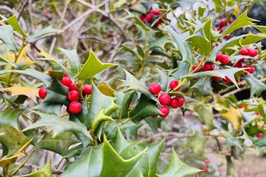 枸骨在校园内的分布数量较少,在图书馆前含弘广场右侧的花木丛中能寻得一株,体育学院旁的路边也生长着几株,静待师生发现这份藏于校园的自然之美。