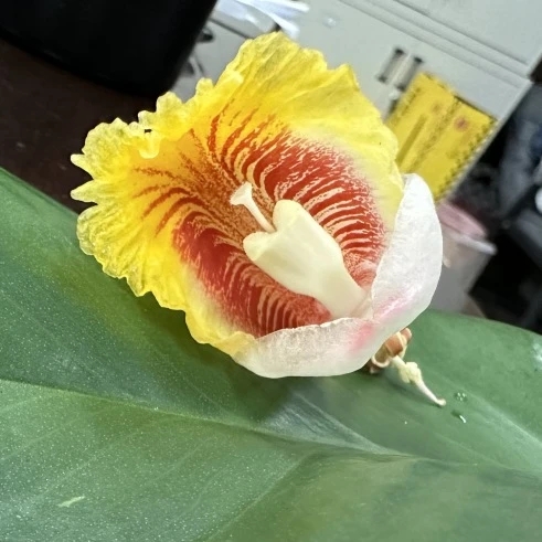 花叶艳山姜,又名花叶良姜,为姜科山姜属多年生草本植物,是山姜属植物的颜值担当。植株最高可达3米,叶片呈披针形、革质状,叶面布有金黄色斑纹,辨识度极高;花期为4-6月,花序自然下垂,花苞绽放前顶端泛红、花体洁白,绽放后花瓣转为黄色,且带有清新香气。其原生分布于我国东南部至南部地区,生长习性喜高热、高湿环境,耐寒性与耐旱性较差,适宜在温润的环境中生长。